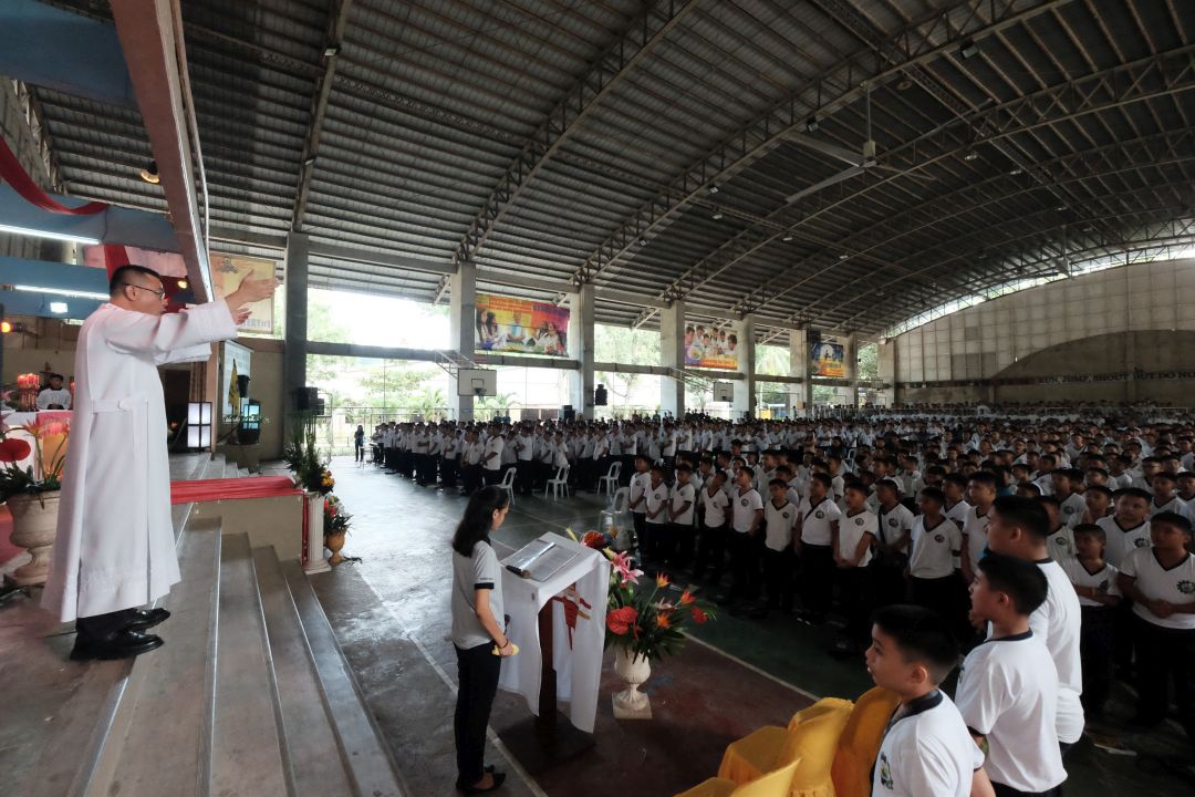 The Salesians aim to repair DBTC‑Cebu as soon as possible in order to bring normality to its educational programmes and ensure the welfare of its students. Delivery of learning is once again in virtual mode this school year and DBTC‑Cebu’s online education has been hugely affected by the loss of internet connectivity and some damage to the school’s recording facilities. The new school year will start in August 2022 and, by that time, everyone is hoping that in‑person classes will finally resume. Meanwhile, the struggle to keep up the repair and reconstruction of damaged buildings and facilities of DBTC‑Cebu continues. In particular, the Students Assembly Area 2 and Gymnasium, a key infrastructure within the school campus which gathers the entire student population under one roof needs to be made functional once more. It is here where a variety of school functions are held and milestones conducted such as graduations, institution‑wide celebrations, cultural programs, and competitive sports. Every day students assemble here to have their morning prayers and listen to short talks before heading for classes.